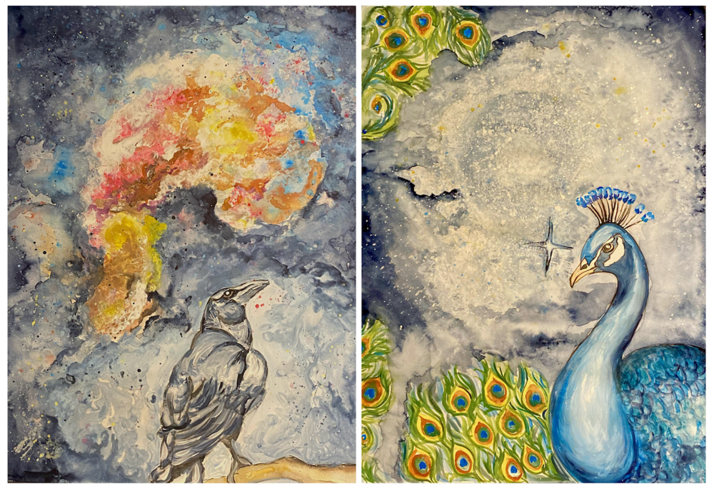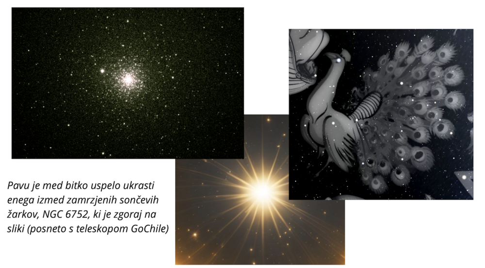 Dijakinje Lili Accetto Vranac, Julija Marolt in Lena Štelcer so napisale lepo pripoved in jo opremile s čudovitimi ilustracijami. V zgodbo so odlično vključile oba opazovana objekta: spremenljivo zvezdo tipa Delta Ščita V0540 Pav in dvojec galaksij Antena (NGC 4038 in NGC 4039). Za nameček so izrisale lepo svetlobno krivuljo spremenljive zvezde in posnetke Antene zložile v prekrasno astrofotografijo.