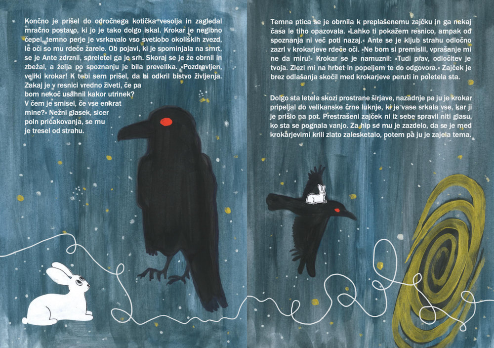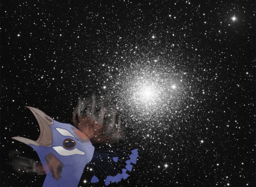 Manca Pristavec, Zoja Baš, Jakob Lah in Anja Kukar so ugotovili, da so galaksije in kopice pravzaprav ostanki bojevanja starodavnih ptic. Posrečeno so združili svoje posnetke (kar številnih) nebesnih objektov z risbami ptičjih junakov. Pri delu jih je vodil mentor prof. Lojze Vrankar.